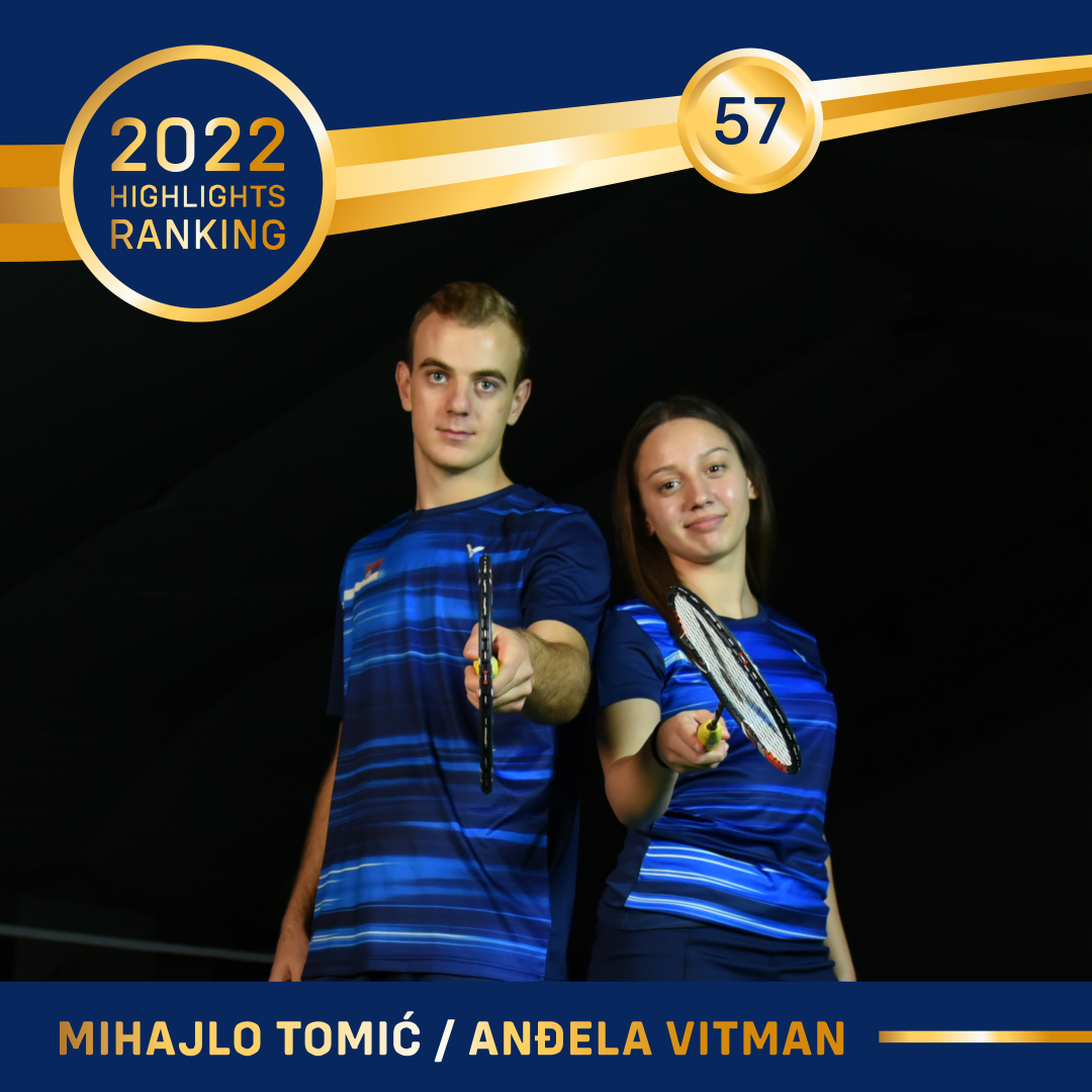 Fantastični rezultati koje je srpski badminton napravio tokom 2022. godine na najlepši način zaokružuje sedamnaestogodišnja reprezentativka Srbije Anđela Vitman – najbolja juniorka sveta u konkurenciji mešovitih parova. Sa 14 330 poena, srpska igračica dominantno zauzima prvo mesto na Svetskoj juniorskoj rang listi, a sudeći prema igri i ostvarenim vrhunskim međunarodnim rezultatima u 2022. godini, sa pravom se nalazi u samoj eliti svetskog i evropskog badmintona.